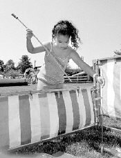 Danielle Rodriguez, 7, of Freehold Township, tries her hand at raising a bottle with a ring attached to a string at Family Fun Day on Saturday at Liberty Oak Park.