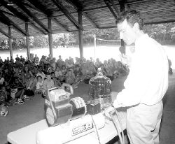 The first day of camp, June 26, was a special one for youngsters at YMCA Camp Arrowhead, Marlboro, as TV host "Bill Nye the Science Guy" (pictured) paid a visit along with Congressman Rush Holt and conducted experiments for the campers.
