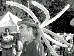 Tina Hammond, Bayville, stops for a quick photo during Octoberfest at the Monroe Township Community Center on Sunday. Hammond decided to dress the part this year with a specially made balloon hat.