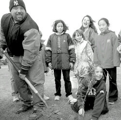 John Segreto, 8, and his dad John, help out during the N.J. Tree Foundation’s annual Make A Difference Day festivities in East Brunswick on Sunday. With a little help, they began digging a hole for the sawtooth sapling, one of 30 trees the township’s fifth-graders planted that day.