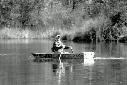 A lone fisherman rows on Lake Manalapan in Thompson Park, Jamesburg, last weekend.