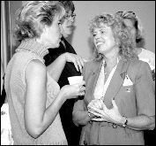 DAWNMARIE SANNWALDT Milltown kindergarten teacher Patty Pellichero (above) waves goodbye to parents as her class arrives at Parkview School for the first day Wednesday morning. At right, Chris Raymond, the new principal at East Brunswick’s Lawrence Brook School, speaks with parent Maria Ferguson (on left) during a bagel breakfast held during the first day of school Wednesday morning.