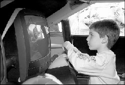 CHRIS KELLY Spotswood Police Sgt. Joseph Seylaz (above) fingerprints 5-year-old Danielle Hamilton of Spotswood during Family Day, held Sunday at Spotswood High School, Summerhill Road. Below, Dominick Bonacci, 7, of Spotswood, takes a turn on some simulated driving inside a replica of the car belonging to NASCAR’s Jeff Burton at Family Day.