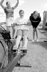 PHOTOSBY CHRISKELLY staff Above, Ronald Tindall of Red Bank trains with Kay Vilardi, a member of the Navesink River Rowing Club. At left, Sarah Kneisler, 17, of Rumson and Ceri Magee, 18, of Fair Haven, cheer on Eatontown’s Joe Burkard during a workout relay.