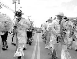 CHRIS KELLY staff Ornately costumed Mummers march along Broadway, Long Branch, in the Columbus Day parade on Oct. 10
