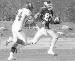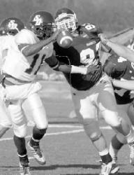 PHOTOS BY SCOTT PILLING staff Above, Monmouth’s Jamaal McClintock takes down San Diego’s J.T. Rogan during Saturday’s Gridiron Bowl in West Long Branch. At left, MU’s Shane Sharpley tries to outrun San Diego’s Patrick O’Neill to the end zone. Below, Monmouth’s Erik Yngstrom is held as he tries to get to the quarterback. Going into Saturday’s inaugural Gridiron Classic, the Monmouth University football team knew what it would take to knock off San Diego.