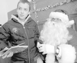 Sean Sanderson, 11, Eatontown, pays a visit to Santa at the Oceanport post office Saturday. Carrier Roy Townsend fills in for Santa.