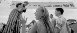The Monmouth County Fair had its annual run at East Freehold Park, Freehold Town-ship, from July 25-29 and drew thousands of people for summer fun. Above, John Maurer sports a colorful outfit and a pair of stilts as he welcomes a family to the fair. At right, Madison Andrews, 5, of Ocean Township, is all smiles after walking through the Monkey Maze. Below, Mark Granit, 2, of Brick Township, tries to direct his father’s attention to another ride. Bottom, Lilah Matthews, 1, of Manalapan, feeds a plethora of pygora goats in the 4-H tent. These photos were taken on July 26.