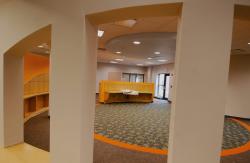 The library will have expanded children’s and adult sections, as well as a drive-up window, café and fine art gallery. Adults will have more quiet study areas, additional books and media, a newspaper and magazine reading area, and a gas fireplace and windows overlooking landscaping to enhance the reading experience. Other new items include more computers, a medical and surgical reference section, copy center and new restrooms.